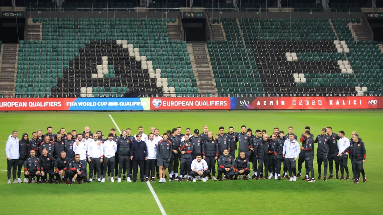 Türkiye A Milli Futbol Takımı, 2026 Dünya Kupası Elemeleri E Grubu 4’üncü maçında bugün saat 21.45’de Kocaeli Stadyumu’nda, Gürcistan’ı ağırlayacak. A Milli Takım Teknik Direktörü Vincenzo Montella ile Kerem Aktürkoğlu basın toplantısının ardından diğer futbolcular ile yeşil sahaya çıktı.