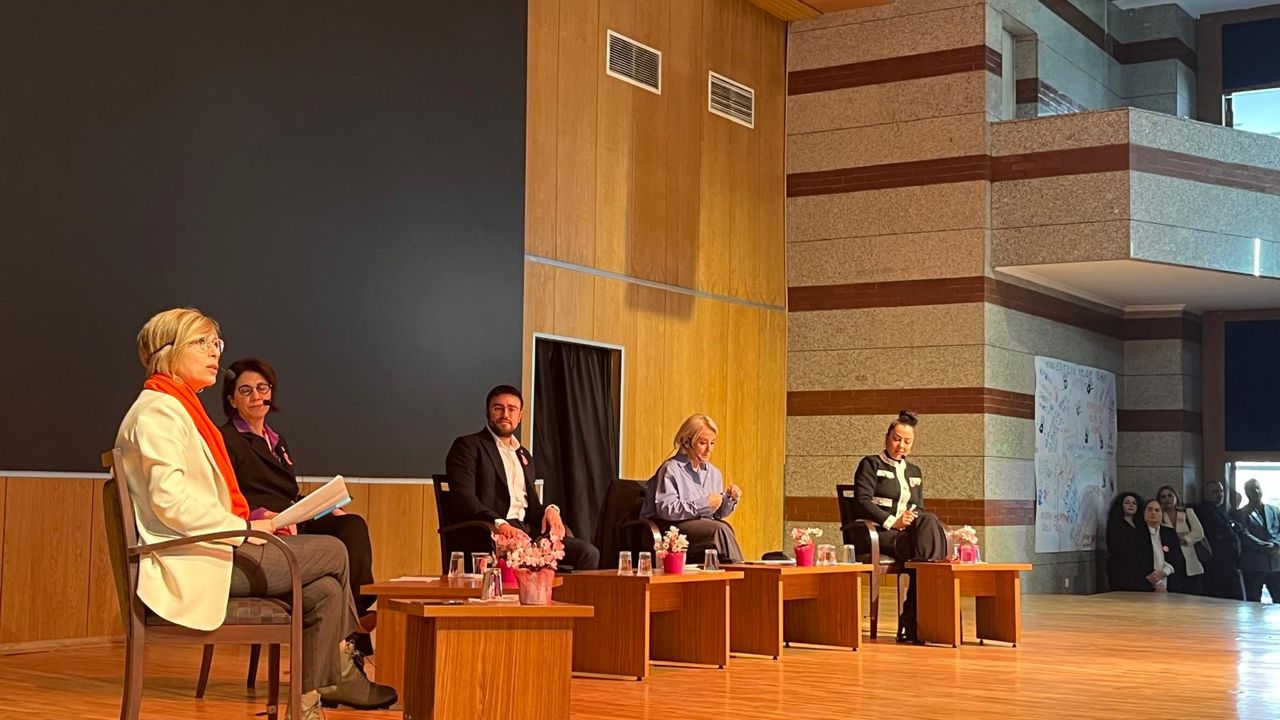Kocatepe Kültür Merkezi’nde Elif Topkaya Sevinç moderatörlüğünde düzenlenen panel kapsamında Prof. Dr. Şengül Hablemitoğlu, Dr. Aylin Yaman, Av. F. Dilek Yurdakul ve Av. Özgür Ünal konuşmacı olarak yer aldı.