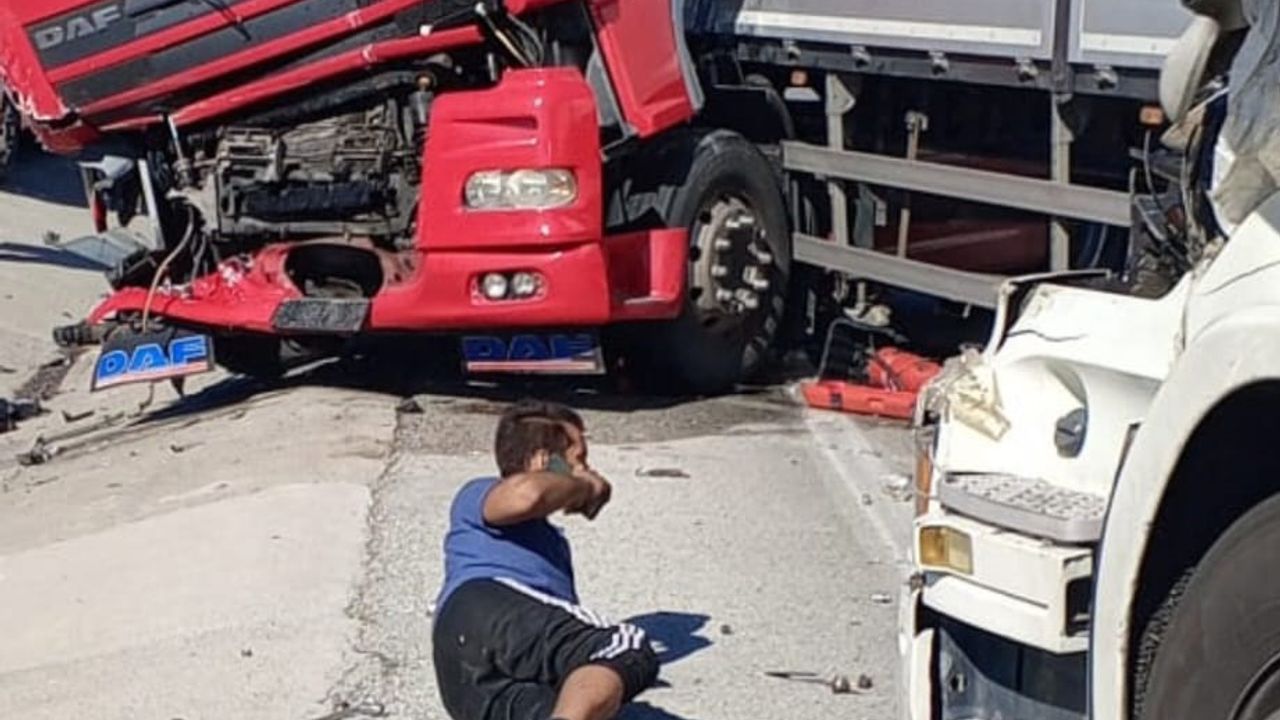 Konya'dan Afyonkarahisar yönüne giden sürücülerinin kimliği öğrenilemeyen 55 RG 011 plakalı boş TIR ile 63 PY 400 plakalı saman balyası yüklü bir TIR çarpıştı.