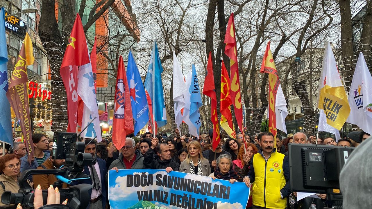 "Yanı başımızda süren emperyalist savaşlar bombalarla, füzelerle yürütülürken devlet-sermayenin doğaya karşı savaşı fiziki şiddet, hukuk sopası ve toplumsal baskıyla yürütülüyor. Bilinsin ki korkmuyoruz! Baskılar karşısında toprağı, havası, suyu için mücadele edenler olarak hiçbir zaman susmadık. İkizdere’de HES’lere, Cerattepe’de altın ve bakır madenlerine, Varto’da JES’lere, bütün bir ekolojik yıkıma karşı barikat önünde, mahkeme koridorlarında bulunduğumuz her yerde doğa ve yaşam için mücadeleyi sürdürdük. Bugün bu tutuklama saldırıları karşısında yine öyle olmaya devam edecek. İkizköylü mücadele arkadaşımız Nejla Işık’ın söylediği gibi “başımız dik, alnımız ak.” Dayanışmadan ve haklılığımızdan aldığımız gücümüzle örgütlü mücadeleyi sürdüreceğiz. Ankara Emek ve Demokrasi güçleri olarak talebimiz açıktır: Esra Işık serbest bırakılsın! Doğa savunucularına yönelik baskılara derhal son verilsin!” denildi.