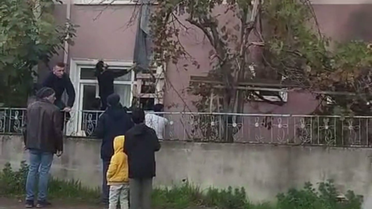 Kocaeli’nin Darıca ilçesinde, alacağını alamadığını öne süren Rahmi Ö., 30 işçinin kaldığı binanın ilk katındaki daireyi ateşe verip kaçtığı olaya dair yeni görüntüler ortaya çıktı. Görüntülerde, yangın sırasında binanın üst katlarında kalan işçilerin birbirlerine bağladıkları çarşaflarla aşağıya sarkarak kurtulduğu anlar görüldü.