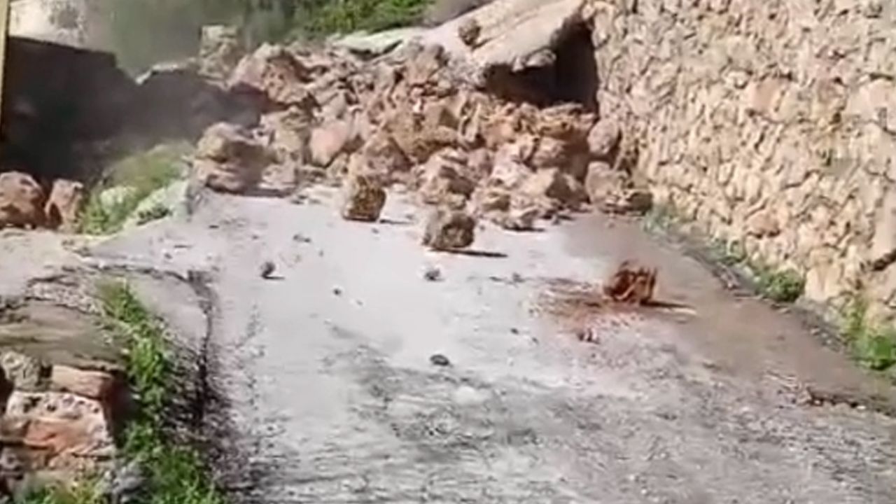 Büyükhasbahçe Mahallesi, Köşk mevkiindeki bir evin yakınına toprak kayması sonucu kopan duvardan taşların dökülme anı cep telefonu kamerası ile kaydedildi. Toprak kayması sonucu evin giriş kapısı toprak ve taş yığınıyla doldu.