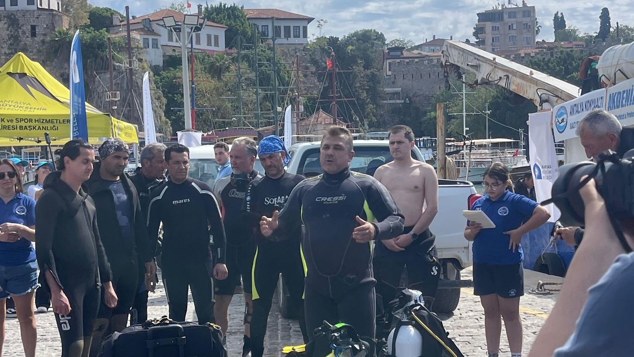 “Antalya İli Deniz Çöpleri Eylem Planı” kapsamında gerçekleştirilen etkinlikte, Antalya Konyaaltı Sualtı Sporları Kulübü (ANTSAK) ve Akdeniz Yunus Dalış Kulübü iş birliğiyle 38 profesyonel dalgıç su altına indi. Türkiye Sualtı Sporları Federasyonu’na bağlı 3 yıldız ve eğitmen seviyesindeki dalgıçlar, deniz tabanında biriken atıkları titizlikle topladı.