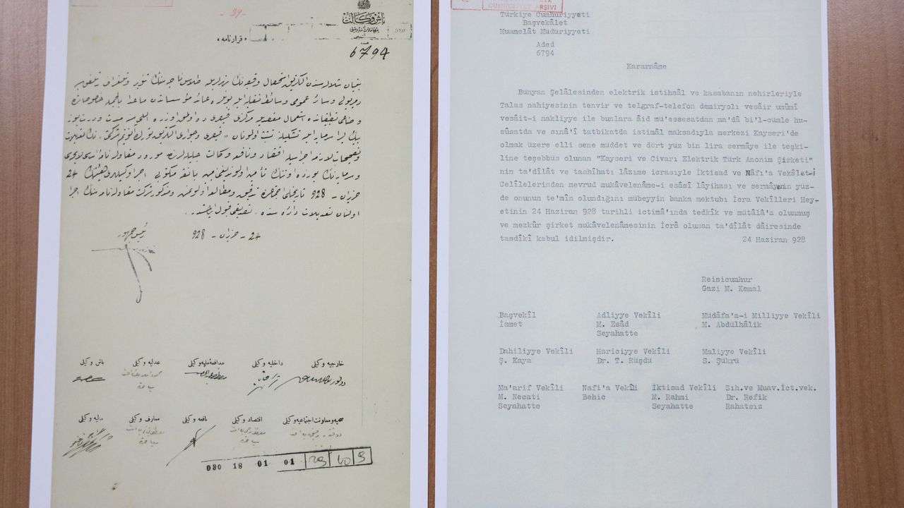 Kayseri'nin Bünyan ilçesinde 1926 yılında Mustafa Kemal Atatürk'ün imzası ile kurulan ve 1930'de faaliyete alınan Bünyan Enerji Santrali, 96 yıldır aynı makineler ile enerji üretmeyi sürdürüyor.