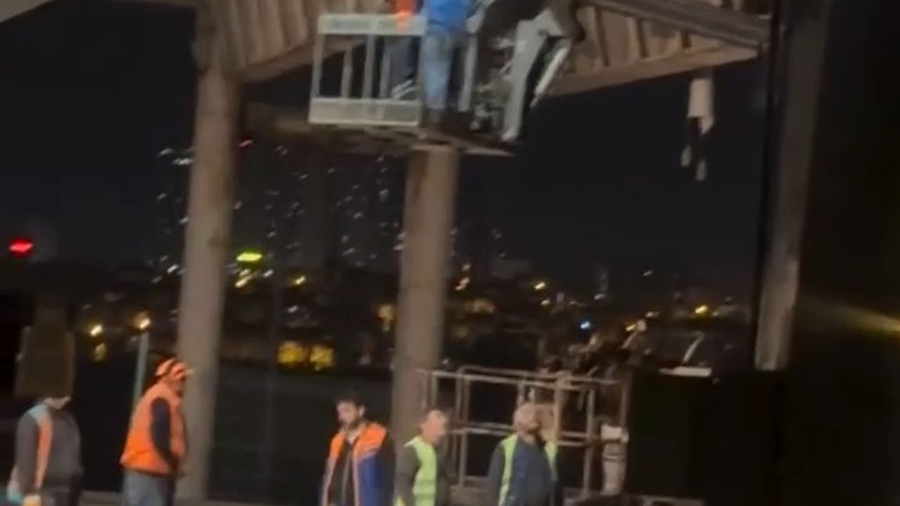 Kaza sonrası ağır hasar oluşan ve kullanıma kapatılan üst geçit, gece saatlerinde belediye ekiplerince kesildi. Merdiven kısmından ayrılan köprü, yok kenarına alındı.