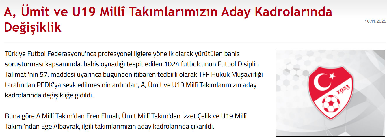 Bu gelişme sonrası, A, Ümit ve U19 Millî Takımlarının aday kadrolarında değişiklikler yapıldı.