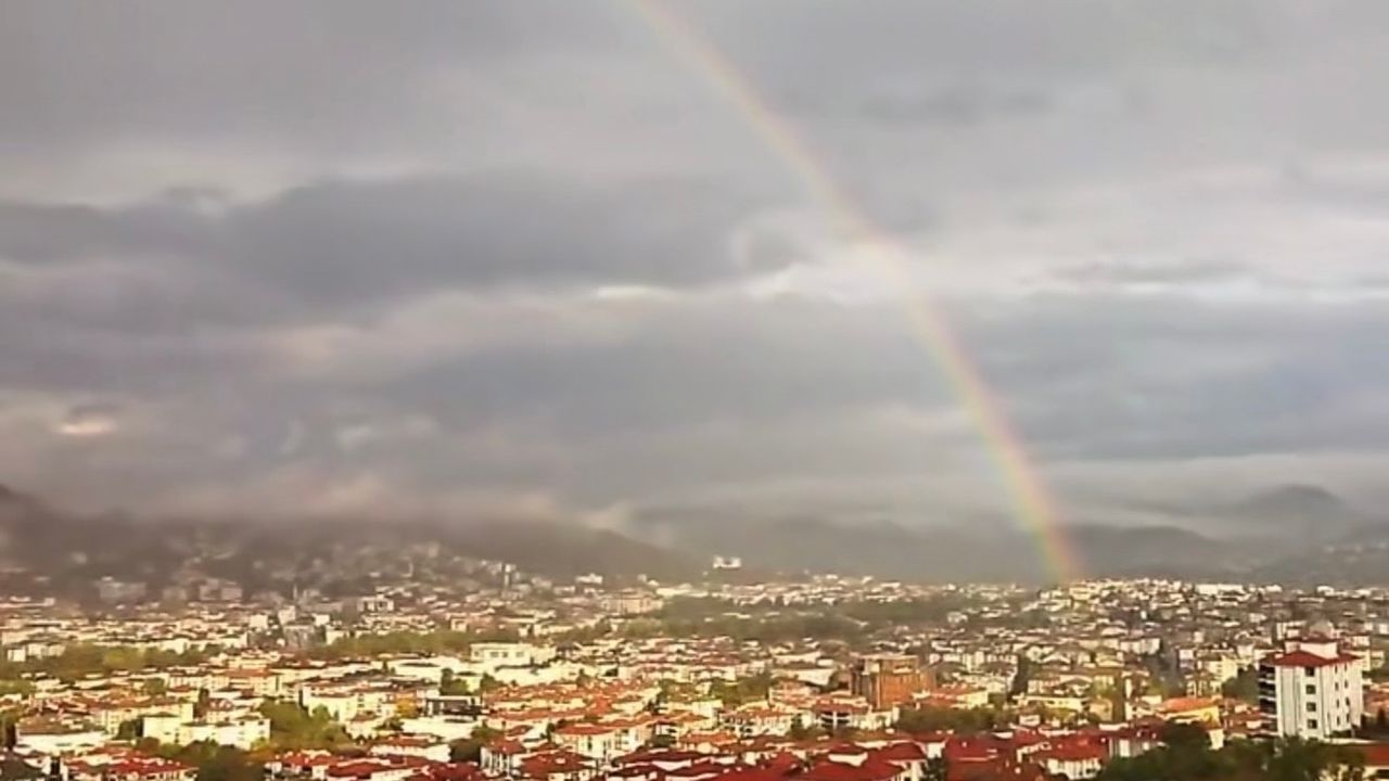 Bartın’da yağmurun ardından güneşin açmasıyla kentin üzerinde gökkuşağı oluştu.