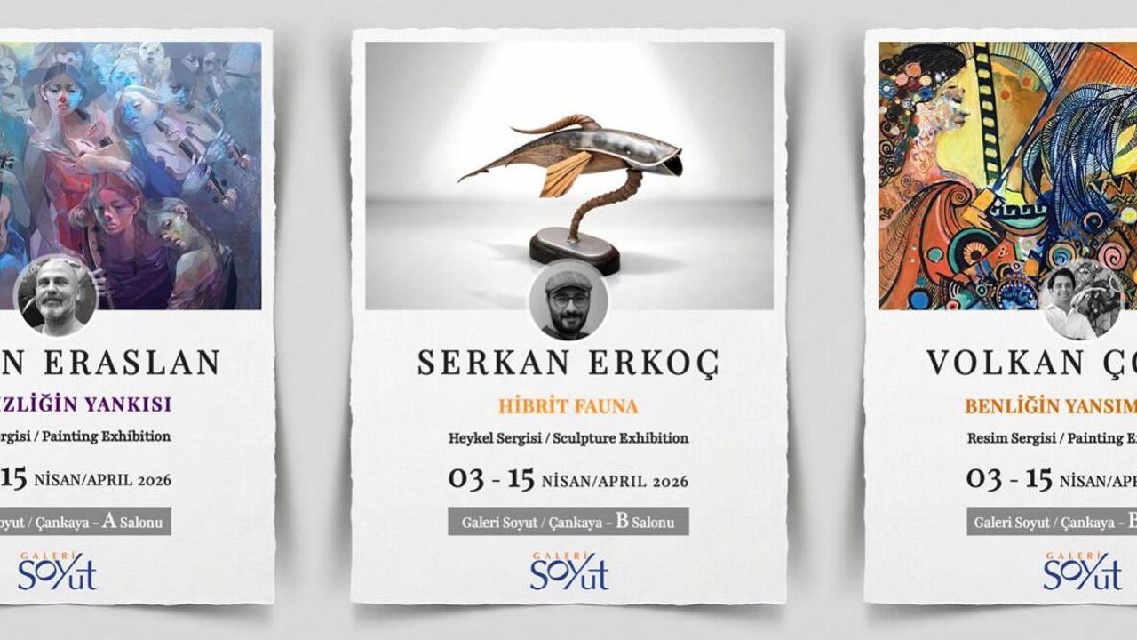 Çankaya’da Galeri Soyut, 3 Nisan Cuma 18.00–20.00 arasında üç yeni sergiyle sanatseverleri ağırlıyor.