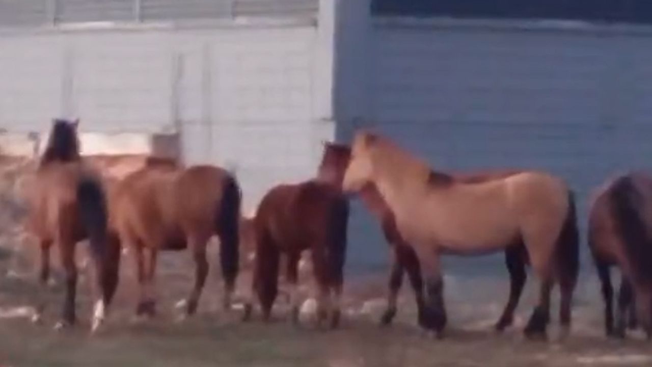 Sürü halinde yiyecek arayan yılkı atları, bir vatandaş tarafından cep telefonuyla görüntülendi.