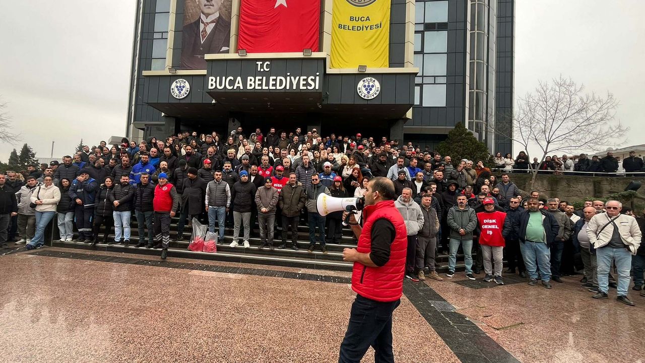 Buca Belediyesi'ndeki işçiler, geçmiş ve mevcuttaki yan haklarını 40 gün geçmesine rağmen almadıkları için dün başladıkları eylemi sonlandırdı.