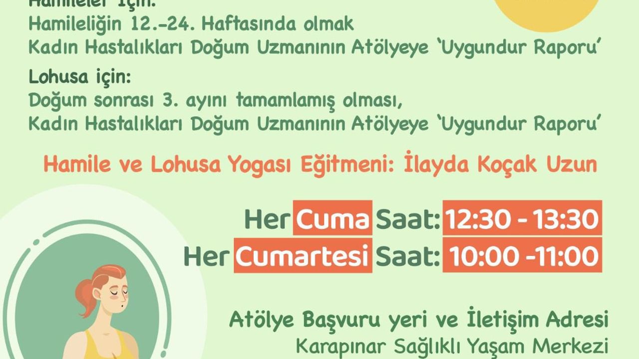 Bu kapsamda Çankaya Belediyesi tarafından hamile ve lohusalara özel yoga eğitimi verileceğini duyurdu. Programda kapsamında hamilelik ya da doğum sonrası dönemde bedeninin ve zihnin nasıl destekleyeceğinizi öğrenilecek.
