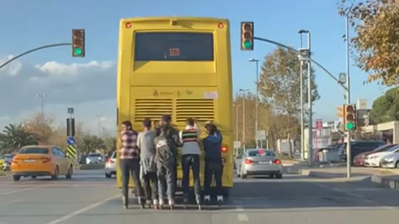 Olay, öğle saatlerinde Maltepe Sahil Yolu Bostancı istikametinde yaşandı. Edinilen bilgiye göre patenli 6 şahıs, trafikte seyir halindeki bir İETT otobüsünün arkasına tutunarak ilerlemeye başladı. Yoğun trafikte kendi can güvenliklerini tehlikeye sokan gençler, aynı zamanda trafikteki diğer şoförler için de risk oluşturdu. Patenle tehlikeli yolculuk bir sürücünün cep telefonu kamerasıyla kaydedildi. Görüntülerde, 6 kişinin seyir halindeki otobüse tutundukları anlar göründü.