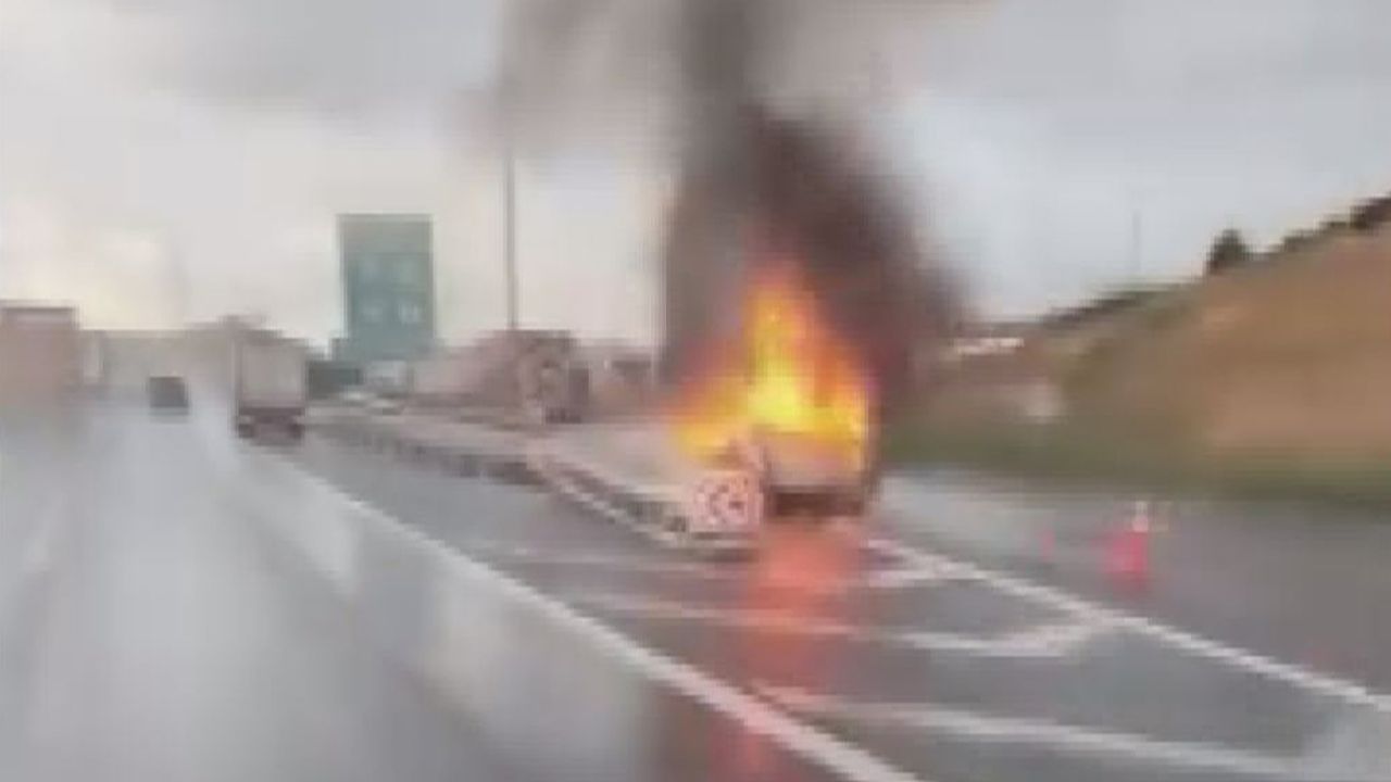 Yangın, saat 08:30 sıralarında Kuzey Marmara Otoyolu Reşadiye kavşağında çıktı. Seyir halindeki hafif ticari araç sürücüsü aracın ön kısmından duman çıktığını görünce aracı emniyet şeridine çekerek indi. Kısa sürede büyüyen yangın aracın her tarafını sardı. İhbar ile olay yerine itfaiye ve jandarma ekipleri sevk edildi. Jandarma ekipleri otoyolda güvenlik önlemi aldı. Yangın itfaiye ekipleri tarafından söndürüldü. Yangında ölen ya da yaralanan olmazken araç kullanılmaz hale geldi. Ekipler yangınla ilgili inceleme başlattı.