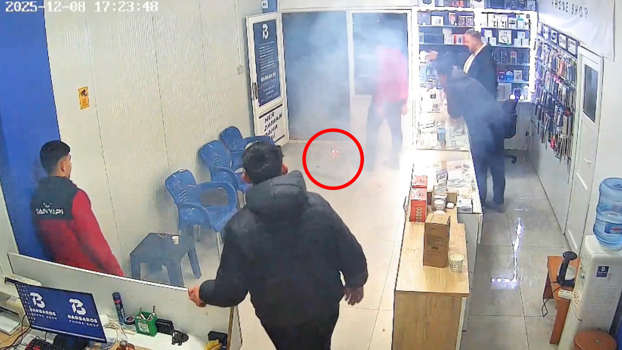 Olay, akşam saatlerinde Midyat ilçesi merkez Yeni Mahalle'de bulunan bir işyerinde yaşandı. İşyerine tamir için getirilen cep telefonunun bataryası, tamir ustası Zeynel Abidin Ertaş tarafından incelendiği sırada patlayarak alev aldı. Ertaş, telefonu işyerinden uzaklaştırmaya çalışırken, içerisi dumanla kaplandı. Olayda yaralanan olmazken, o anlar işyerinin güvenlik kamerasına yansıdı.