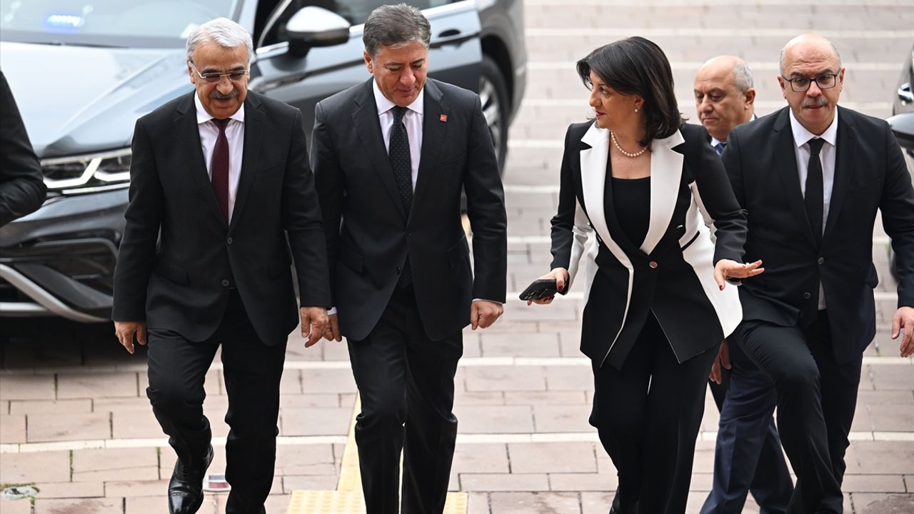 Özgür Özel, CHP Genel Merkezinde, TBMM Başkanvekili ve DEM Parti Van Milletvekili Pervin Buldan, DEM Parti Şanlıurfa Milletvekili Mithat Sancar ve avukat Faik Özgür Erol'dan oluşan DEM Parti heyeti ile görüşme gerçekleştirdi.