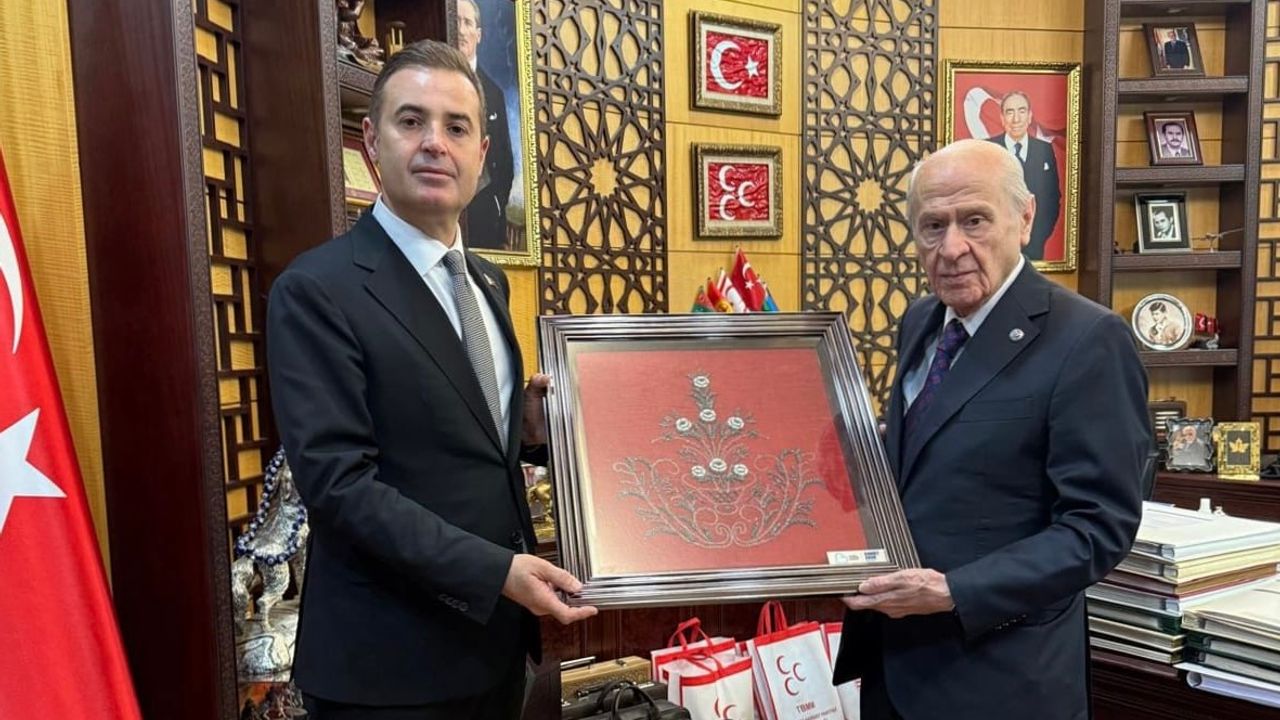 “MHP Genel Merkezi'nde, MHP Genel Başkanı Sn. Devlet Bahçeli'yi, Genel Başkan Yardımcısı Sn. İzzet Ulvi Yönter'i, MYK Üyesi ve Balıkesir Milletvekilimiz Sn. Ekrem Gökay Yüksel'i ziyaret ettim. Balıkesir’imizin kalkınması yararına yapılacak çalışmalar hakkında görüşmeler gerçekleştirdik. Misafirperverlikleri için kendilerine teşekkür ediyorum.“