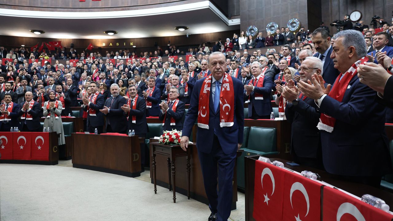 Bölgede 28 Şubat'ta başlayan ve birinci ayını dolduran savaşın, tehdit ve tehlike düzeyini artırarak devam ettiğini dile getiren Erdoğan, 'Önceliğimiz, ülkemizin bu fırtınalı dönemi kazasız belasız atlatmasıdır. Türkiye'yi bu yangının uzağında tutmakta kararlıyız. Hükümet olarak muhalefetin bizi çekmek istediği tuzaklara düşmeden, temkinli, itidalli, dengeli ve rasyonel bir zeminde bu süreci yönetiyoruz. Dışişleri Bakanımız İslamabad'da düzenlenen Suudi Arabistan, Mısır, Pakistan Dışişleri Bakanlarının bir araya geldiği dörtlü toplantıya iştirak etti. Toplantıya endişelerimizi ve savaşı durdurmak için atılabilecek müşterek adımları dile getirdik. Milli Savunma Bakanımız, MİT Başkanımız ve diğer ilgili arkadaşlarımız kendi görev alanları içinde yoğun gayret sarf ediyorlar. Türkiye'nin tavrı çok berraktır, bölgemizde barışın hakim olması için ne yapılması gerekiyorsa bunları tereddütsüz yapmayı görev biliyoruz. Akan kanın durması, gözyaşının dinmesi, silahların susması, sorunların diplomasiyle çözülebilmesi için şayet iğne ucu kadar dahi umut varsa bunu değerlendirmek boynumuzun borcudur. Savaşın başından beri Türkiye'nin ilkeli duruşu, tavrı, dünyaya ve bölgeye verdiği mesajlar insanlığın ve vicdanın sesi olmuştur' dedi.