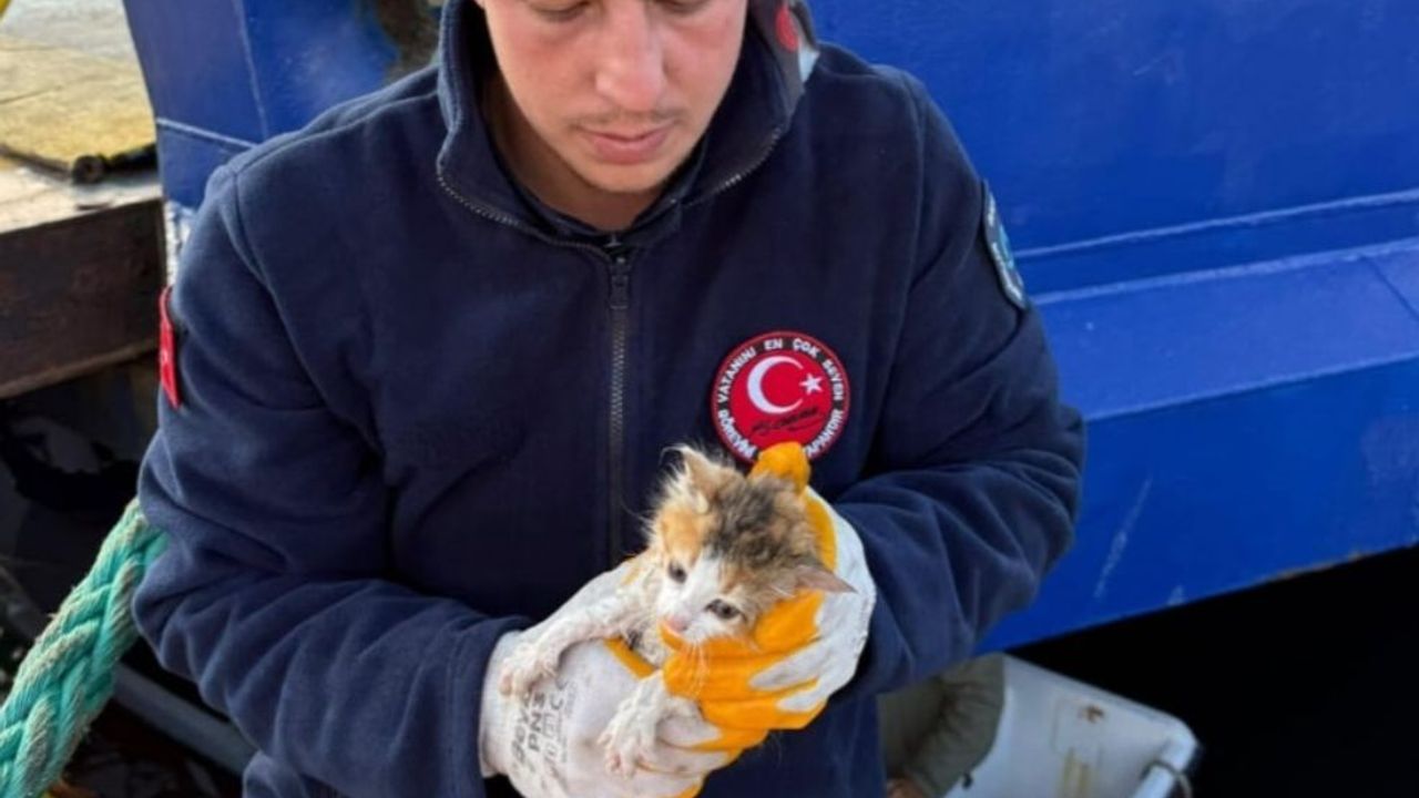 Erdek Limanı’nda denize düşen yavru kedileri görenler, hayvanların üstüne çıkması için denize palet attı, itfaiyeye haber verdi. Kedilerden biri palete tutunarak sürüklenmekten kurtulurken diğer yavru kedi için Sahil Güvenlik ekipleri devreye girdi. Sürüklenen kedi, Sahil Güvenlik ve itfaiye ekipleri tarafından kayığa alındı, palete tutunan kedi için itfaiye ekipleri hayat uzattı. Halata tutunan kedi, çekilerek denizden çıkarılırken o anlar, çevredekiler tarafından cep telefonu kamerasıyla görüntülendi.