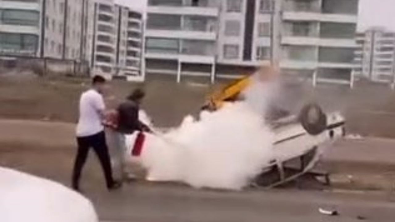 Kaza, dün akşam saatlerinde Yenişehir ilçesi Dönümlü Mahallesi Şeyh Said Bulvarı'nda meydana geldi. Sürücüsünün ismi ve plakası öğrenilemeyen otomobil, kontrolden çıkarak takla attı. Ters dönen otomobil alev alarak yanmaya başladı. Çevredekiler alevlere yangın tüpüyle müdahale etti. Yangın söndürülürken, otomobildeki sürücü yaralandı ve ihbarla olay yerine gelen sağlık ekiplerinin ilk müdahalesinin ardından hastaneye kaldırıldı. Kaza anı ise güvenlik kamerasına yansıdı.