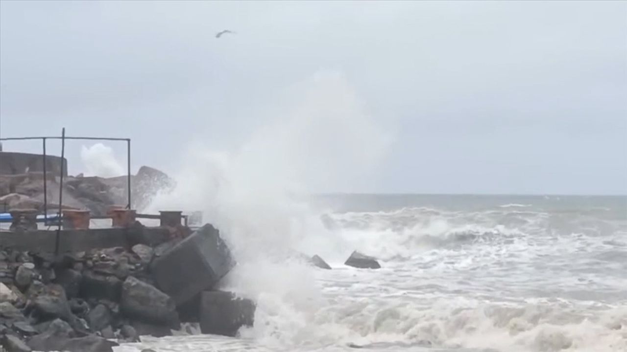 Rüzgar sebebiyle boyu 4 metreye yaklaşan dalgalar, zaman zaman kıyı şeridindeki dalgakıranları aştı.