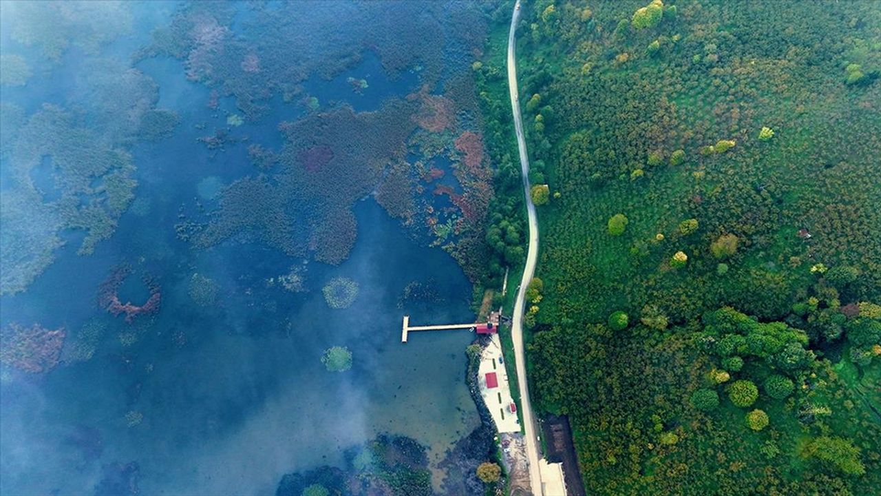 'Ulusal Öneme Haiz Sulak Alanı' içerisinde yer alan kuş cennetinin havzasındaki Gölyaka Kültür Park'ta sis etkili oldu.