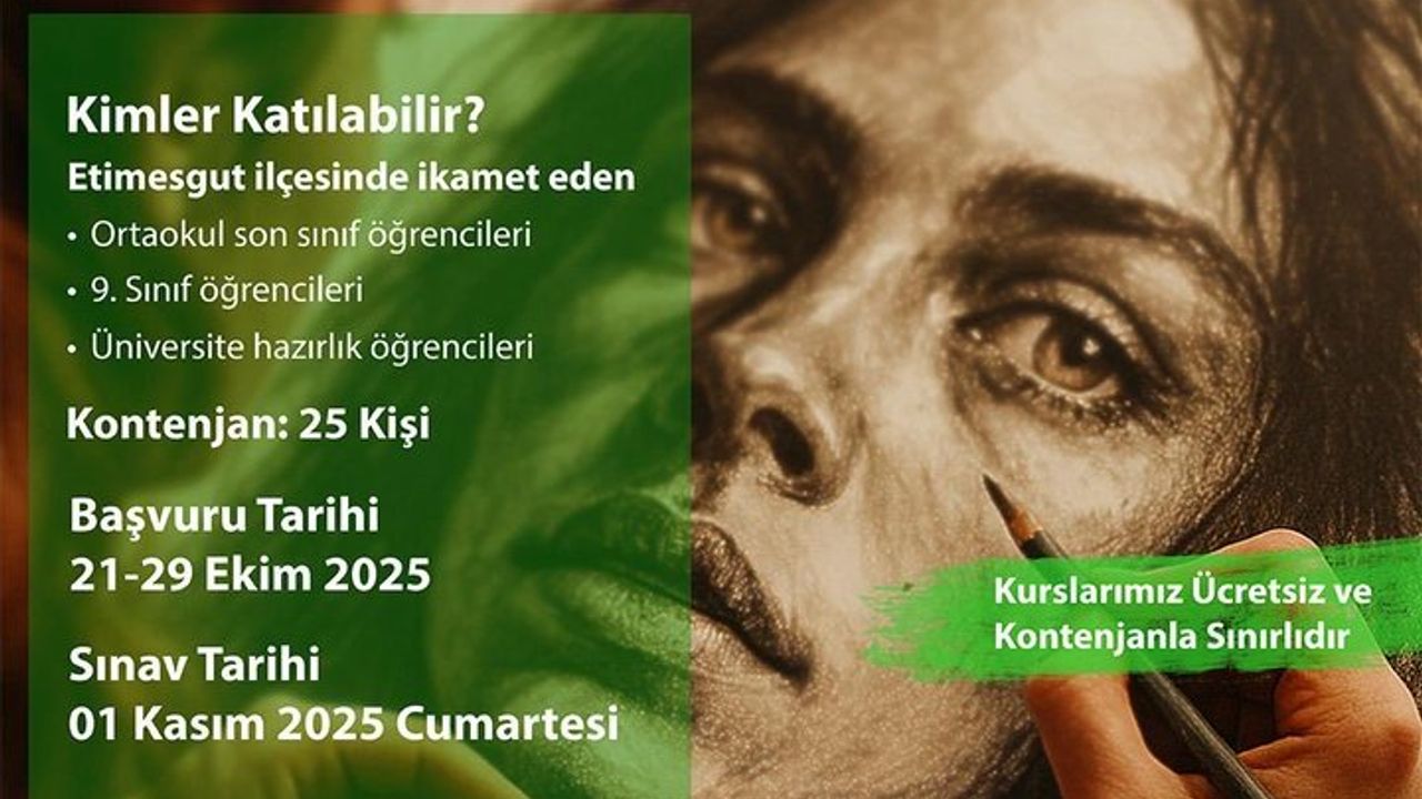 Sanatla büyüyen gençlerin yarının dünyasını aydınlatacağını ifade eden Etimesgut Belediyesi 21-29 Ekim tarihleri arasında kursa kayıt yaptırılabileceğini, sınavın ise 11 Kasım'da yapılacağını belirtti.