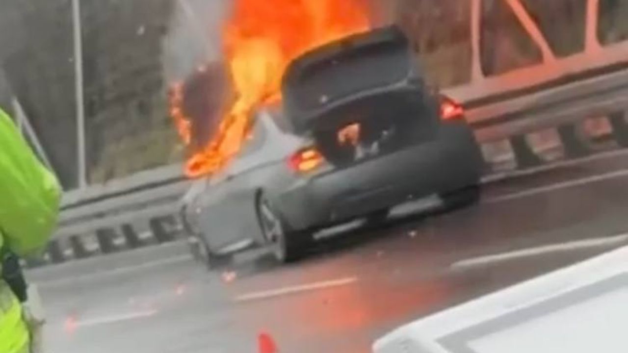 Bakırköy istikametinde ilerleyen otomobilin motor kısmından henüz bilinmeyen sebeple duman yükseldi. Durumu farkeden sürücü, aracını emniyet şeridine çekerek alevlere müdahale etmek istedi. Çevredeki sürücülerin ihbarı üzerine olay yerine itfaiye ve polis ekipleri sevk edildi. Polis ekipleri trafik akışını tek şeritten kontrollü şekilde sağlarken itfaiye ekipleri yangına müdahale etti. Yangın kısa sürede söndürülürken demir yığınına dönen otomobil çekiciyle otoparka kaldırıldı. Yangının çıkış nedenine ilişkin inceleme başlatıldı. Zaman zaman patlamaların yaşandığı yangını çevredeki sürücüler cep telefonu kamerasıyla kaydetti.