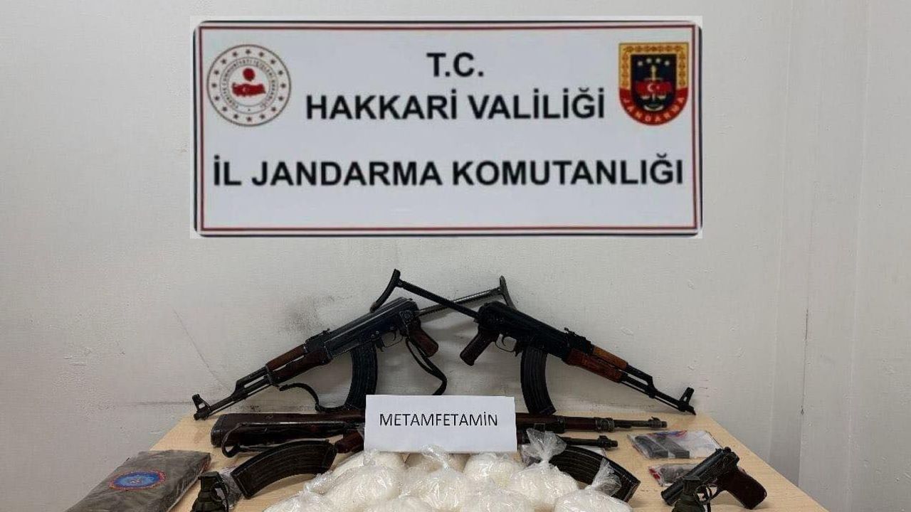 Hakkari İl Jandarma Komutanlığı Narkotik Suçlarla Mücadele Şubesi ekipleri, Çukurca ilçesinde C.G. ve G.G.'nin adreslerinde uyuşturucu ve silah olduğu ihbarı aldı. İhbarla her iki adrese operasyon gerçekleştirildi. Operasyonda adreslerde yapılan aramada 5 kilo metamfetamin ile 3 AK-47 Kalaşnikof piyade tüfeği, 1 mavzer tüfek, 2 el bombası, 1 tabanca, 19 şarjör, 424 fişek, 2 kütüklük ve 34 doldurma aparatı ele geçirildi. Operasyonda C.G. gözaltına alınırken, G.G.'nin yakalanmasına yönelik çalışmalar devam ediyor.