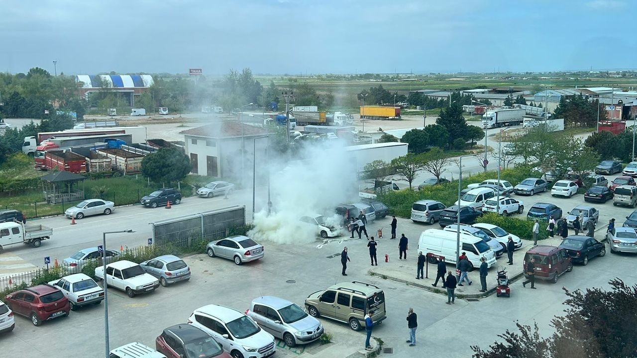 Karacabey Devlet Hastanesi'ne yakınını götüren Turgay Ç., 77 AAK 391 plakalı otomobilini saat 11.00 sıralarında otoparka park etti. Bir süre sonra aracın motor kısmından dumanlar çıkmaya başladı, ardından da alev aldı. Çevredekilerin ihbarı üzerine adrese itfaiye, polis ve sağlık ekipleri gönderildi. Polis ekipleri yangın tüpüyle ilk müdahaleyi yaptı, kısa sürede gelen itfaiye ekipleri alevleri kontrol altına alıp söndürdü.