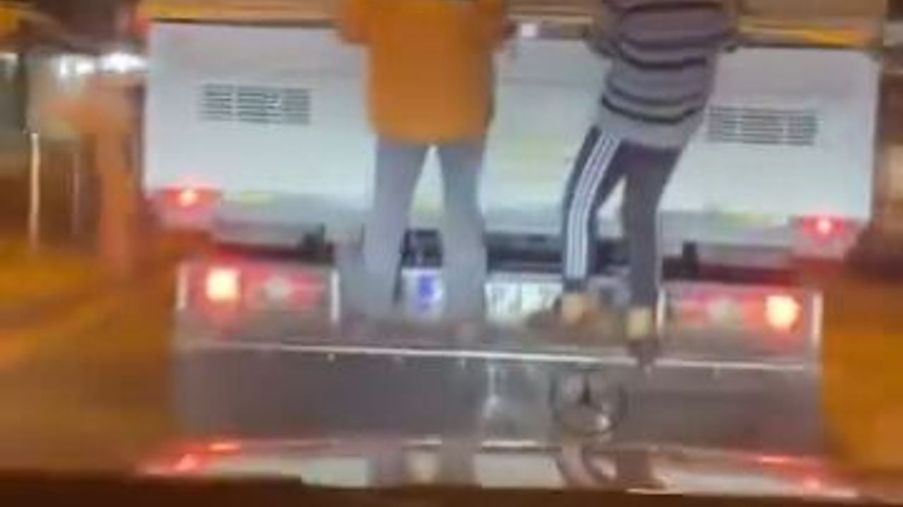 Olay, akşam saatlerinde Reyhanlı'daki Atatürk Caddesi'nde meydana geldi Seyir halindeki kamyonetin arkasına asılan 2 çocuk, sürücüden habersiz tehlike yaklaşık 3 kilometre tehlikeli şekilde yolculuk etti.