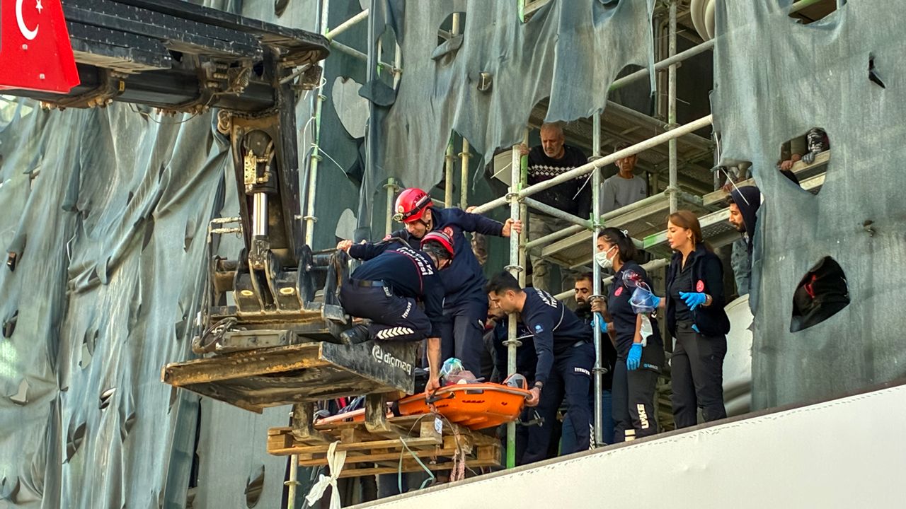 Olay, saat 11.00 sıralarında Konyaaltı ilçesi Altınkum Mahallesi'nde 8 katlı inşaat halindeki bir binada yaşandı. 5'inci katta iskele üzerinde çalışan Ünal Kayhan, bir anda dengesini yitirdi. İskeleye tutunmaya çalışan Kayhan, 2'nci kata düşerek yaralandı. Bu sırada durumu fark eden mesai arkadaşları Kayhan'ın yardımına koşarken ihbarla adrese sağlık ve itfaiye ekibi sevk edildi. Sağlık ekibi tarafından ilk müdahalesi gerçekleştirilen Kayhan, sedyeye alındı. Bu esnada iş makinesinin ucuna takılan palet, Kayhan'ın düştüğü yere doğru uzatıldı. Kayhan'ın üzerinde olduğu sedye iş makinesinin kepçesine alınıp aşağı indirildi. Kayhan, Antalya Eğitim ve Araştırma Hastanesi'ne kaldırılarak tedavi altına alındı.
