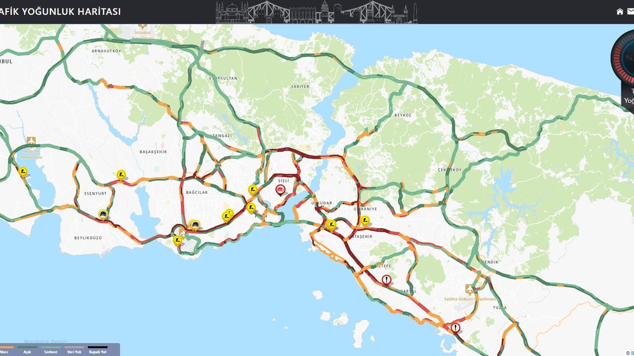 İstanbul'da akşam saatlerinde trafik yoğunluğu meydana geldi. İstanbul Büyükşehir Belediyesi Trafik Yoğunluğu Haritası verilerine göre saat 19.00 itibariyle yoğunluk yüzde 85'e çıktı. Kentteki ana arterlerde trafik neredeyse durma noktasına geldi. D-100 Karayolu’nun Sefaköy mevkisinde araçların güçlükle ilerlediği görüldü.