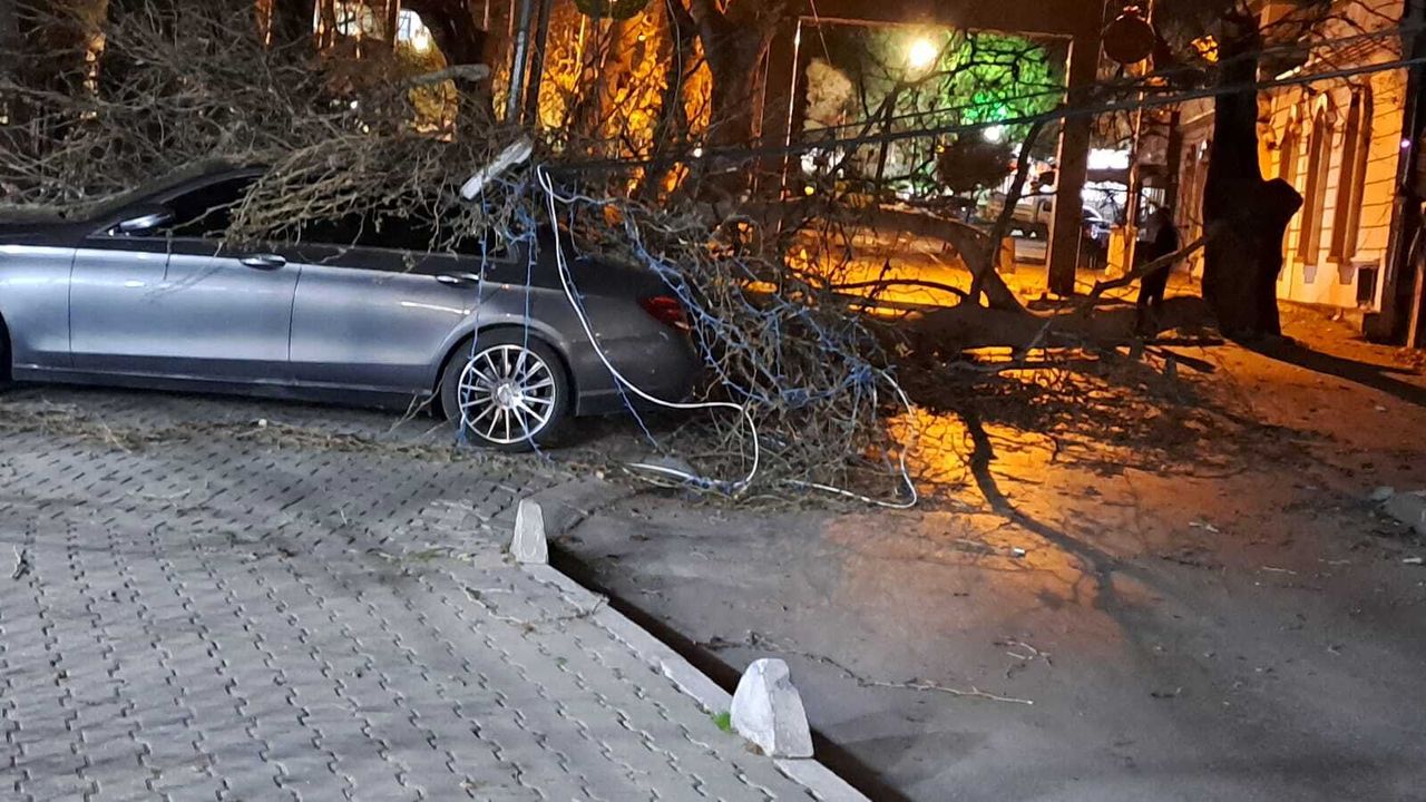 İzmir Bornova ilçesinde, şiddetli rüzgarın etkisiyle park halindeki bir otomobilin ve yakınlardaki bir düğün salonunun gelin odasının üzerine ağaç devrildi.