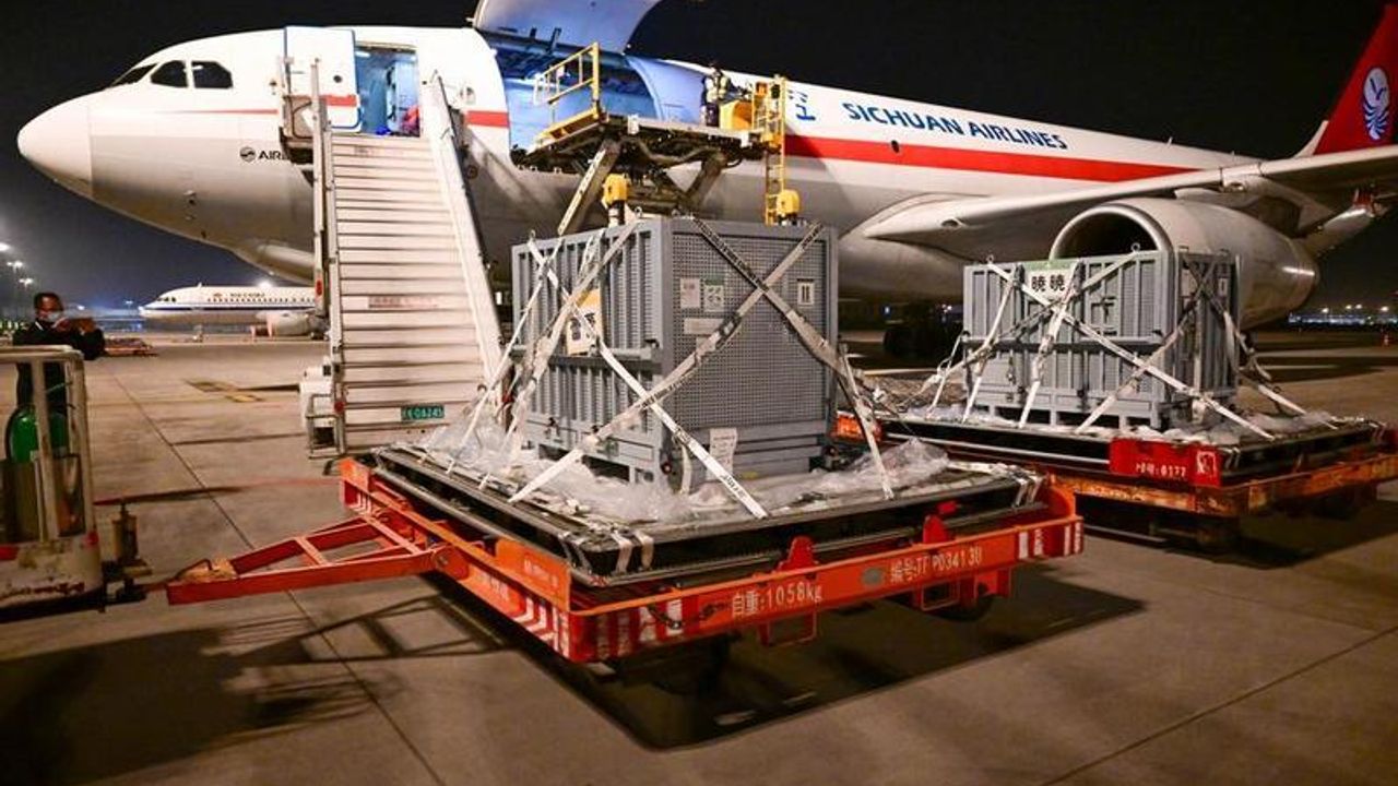 Pandalar bugün yerel saatle 01.00'de Çin'in güneybatısında bulunan Sichuan eyaletinin merkezi Chengdu'ya ulaştı. Pandalar buradan, karantinaya alınacakları Çin Dev Panda Koruma ve Araştırma Merkezi'nin Ya'an üssüne gönderildi. Çin ilk defa 1972'de Japonya ile normalleşen ikili ilişkilerin anısına Tokyo'daki Ueno Hayvanat Bahçesi'ne panda hediye etti.