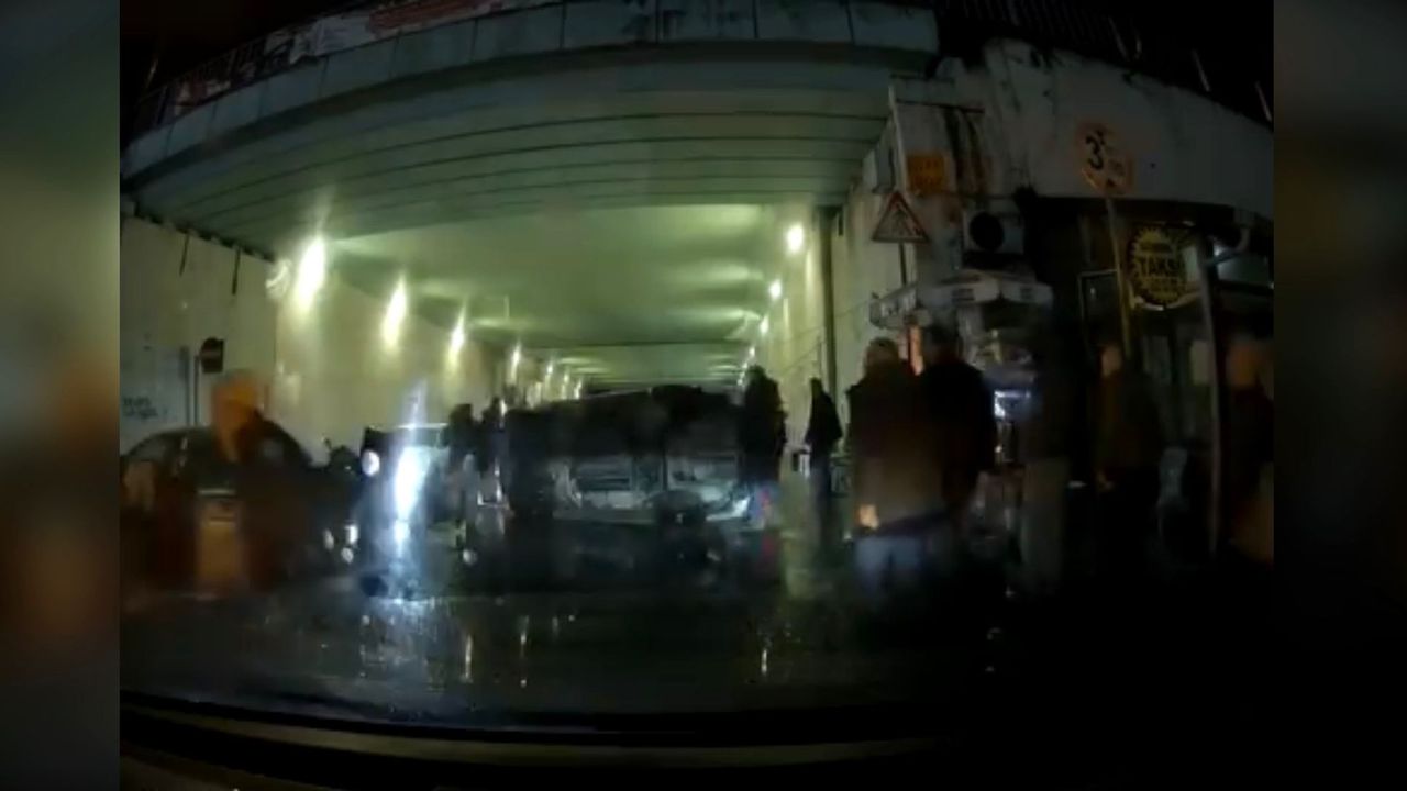 Kaza anı ise başka bir otomobilin araç içi kamerasına yansıdı. Polis ekipleri kazayla ilgili inceleme başlattı