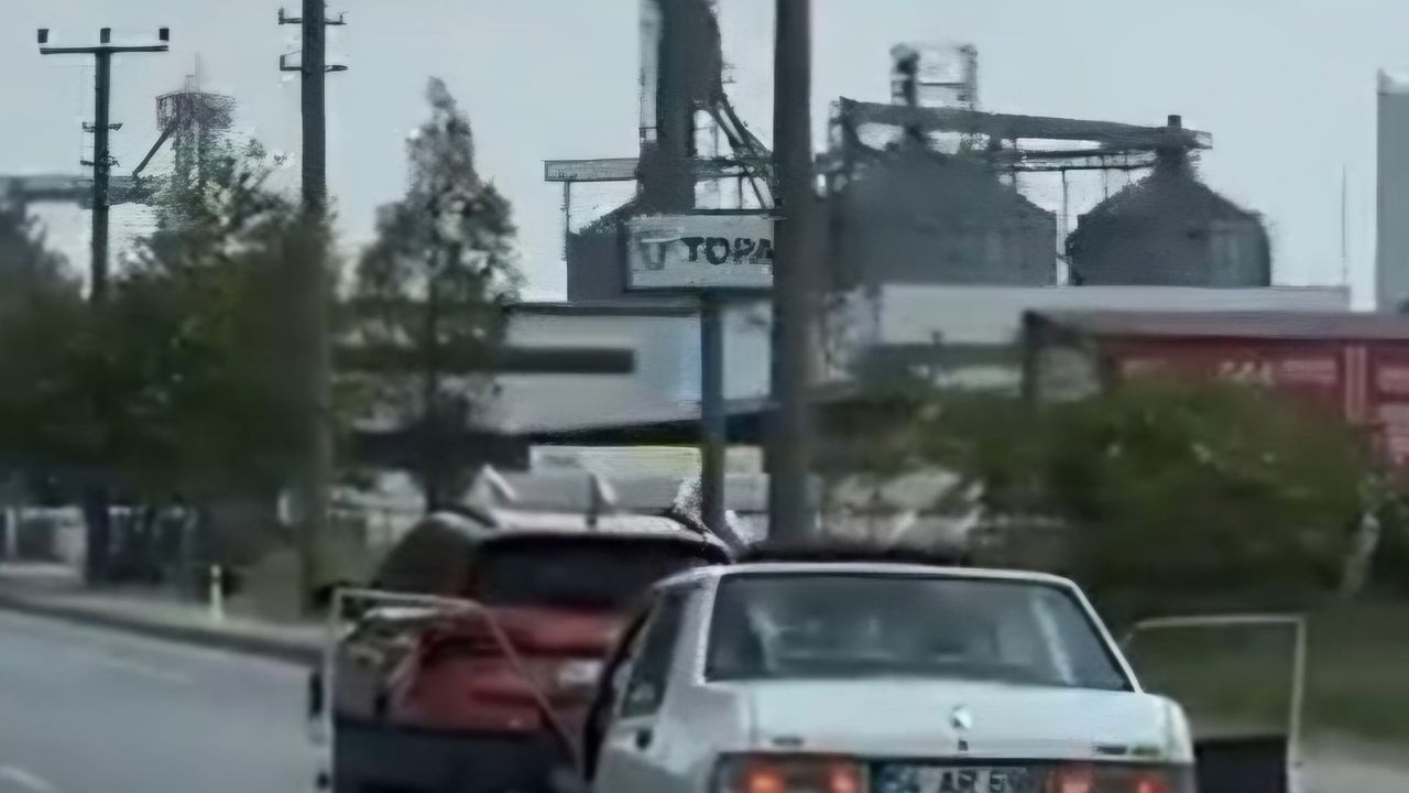 Adapazarı Kuzey Terminali ve Karasu Kavşağı arasındaki Çevreyolu Caddesi'nde kapıları açık şekilde ve yüksek ses ile müzik dinleyerek seyir halinde olan otomobil sürücüsü, başka bir sürücü tarafından cep telefonu ile görüntülendi.
