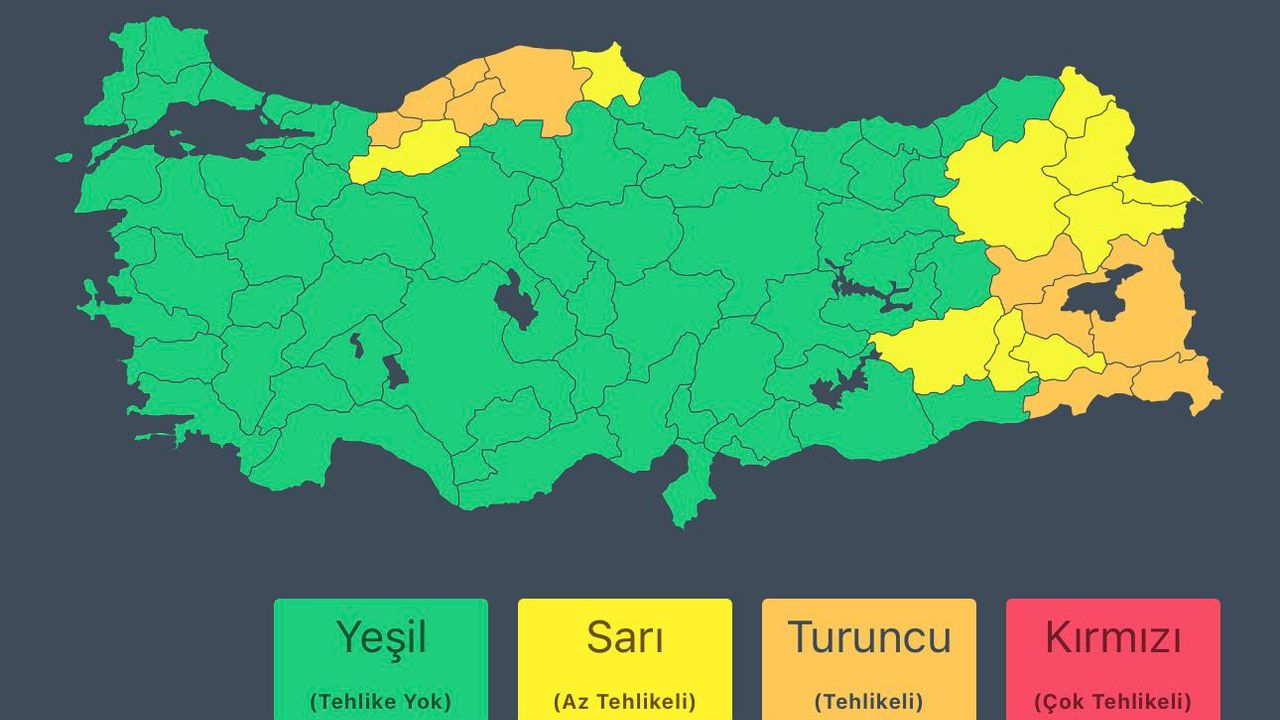 Açıklamada ayrıca, Erzincan, Elazığ, Tunceli, Erzurum, Ardahan ve zamanla Iğdır'ın yüksekleri ile Ağrı, Kars ve Van'da 5-20 santimetre aralığında kuvvetli kar yağışı beklendiği; Bingöl, Bitlis, Muş, Hakkari ve Şırnak'ın kuzey ve doğu kesimlerinde ise yer yer 20 santimetrenin üzerinde yoğun kar yağışlarının görülebileceği belirtildi.