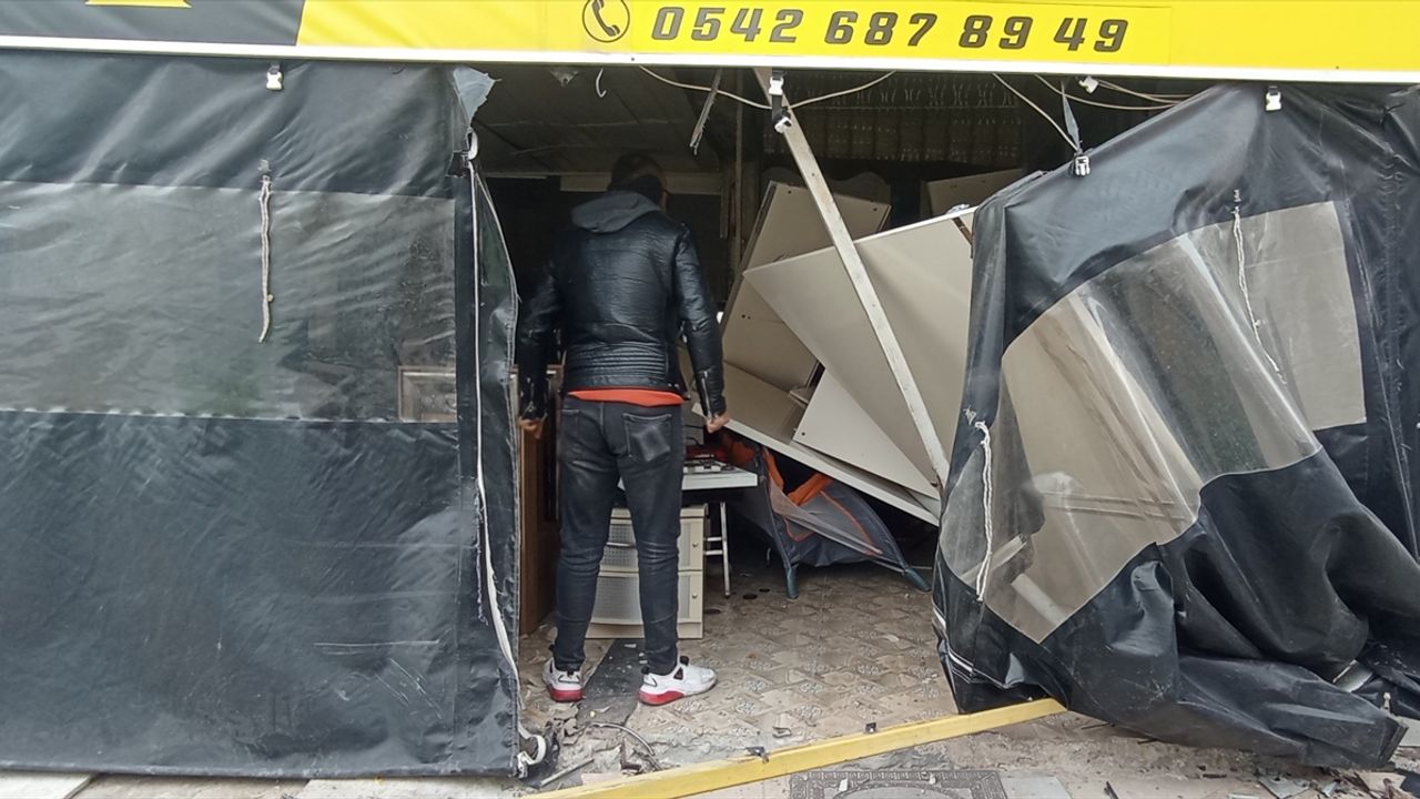 Çarpışmanın etkisiyle 70 HE 253 plakalı otomobil bir iş yerine çarparak durabildi.