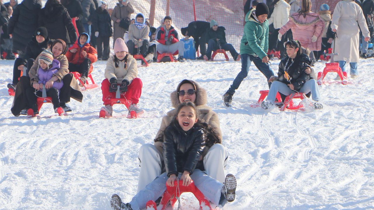 Türkiye'nin önemli kayak merkezlerinden Palandöken'de, sömestir yoğunluğu yaşanıyor. Tatil için 3 bin 176 metre yükseklikteki Palandöken'e gelen çocukların bazıları kayak yaparken bazıları da kızaklarla pistte kayıyor.