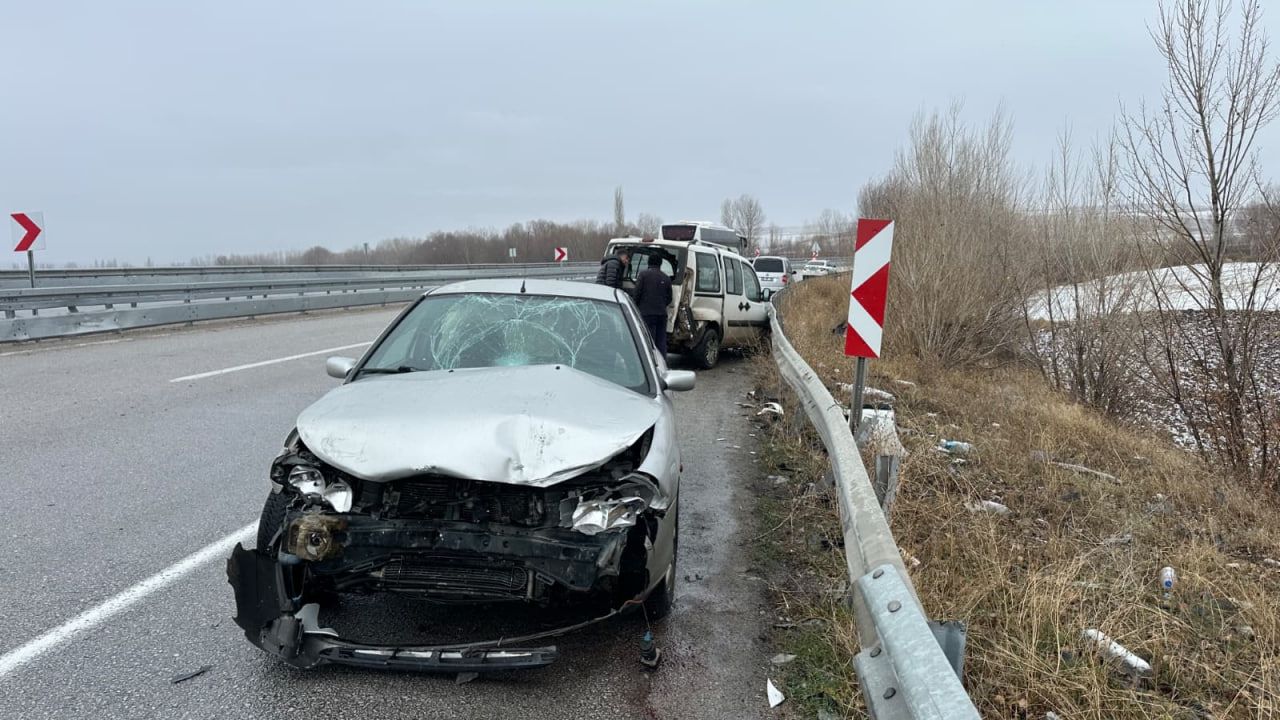Çorum'un Alaca ilçesinde bariyerlere çarpan hafif ticari araçtan inenlere aynı istikamette yol alan otomobil çarptı. Kazada 5 kişi yaralandı.