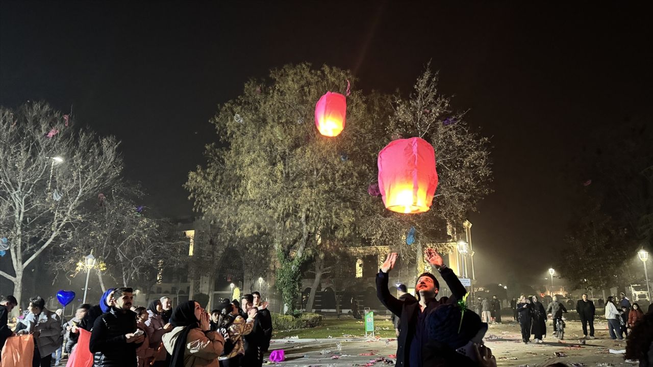 Kültürpark’a gelen vatandaşlar, çocuklarıyla birlikte yaktıkları fenerleri gökyüzüne bıraktı.