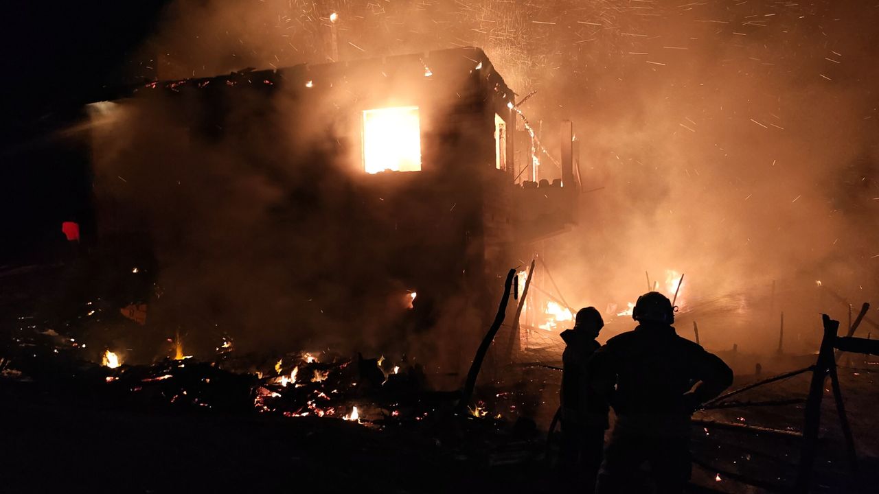 Gece saat 23.00 sıralarında Ören Mahallesi Yaren Kaşı mevkisinde meydana gelen olayda, İbrahim Bilgin’e ait evin çatı katında henüz belirlenemeyen bir nedenle yangın çıktı. Kısa sürede büyüyen alevler tüm evi sararken, mahalle sakinleri durumu 112 Acil Çağrı Merkezi’ne bildirdi. Vatandaşlar, itfaiye ekipleri olay yerine ulaşmadan önce evde bulunan kişileri ve ahırdaki 10 küçükbaşı tahliye etti.