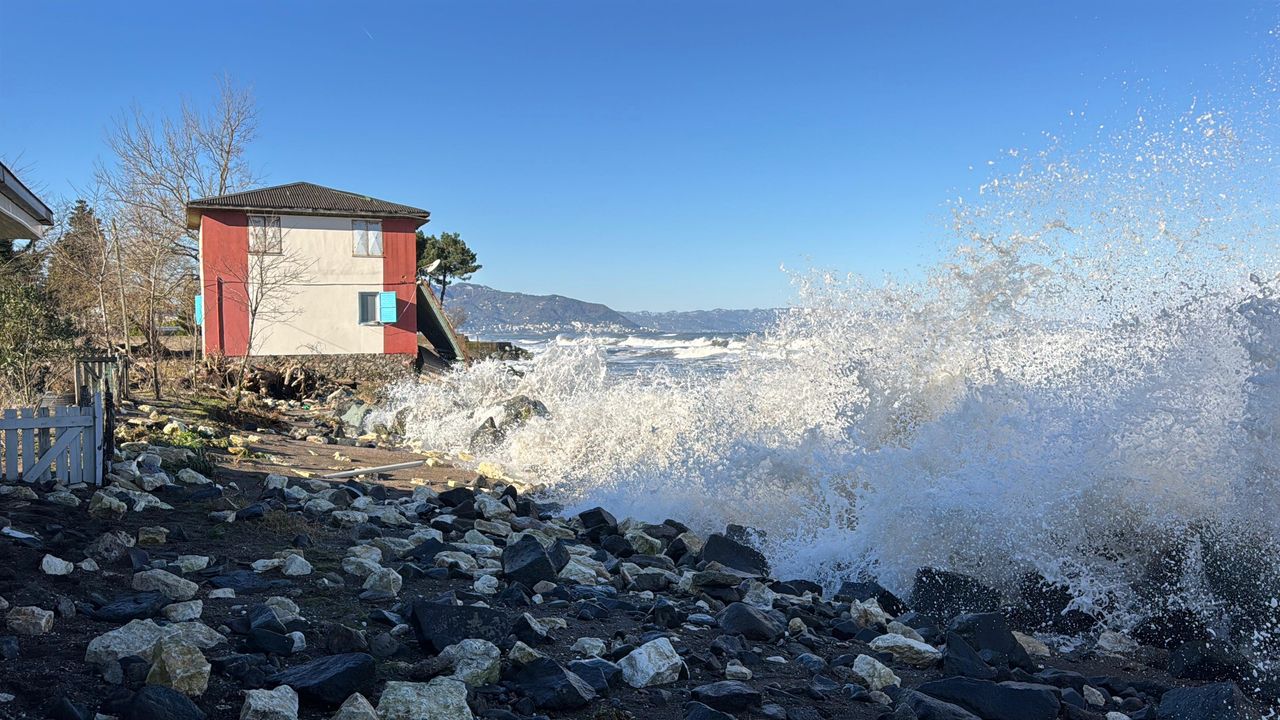 Fırtınayla oluşan dalgaların evlerini titrettiğini ifade eden Tugay Gürsoy, 'Dalgalar deniz üzerinden yükselerek kıyıya vurdu ve buradaki bazı evler zarar gördü. Evlerimizin bahçelerinde deniz suyu birikti. Biraz kendi çabalarımızla ve belediye ekiplerinin çalışmalarıyla temizliyoruz' dedi.