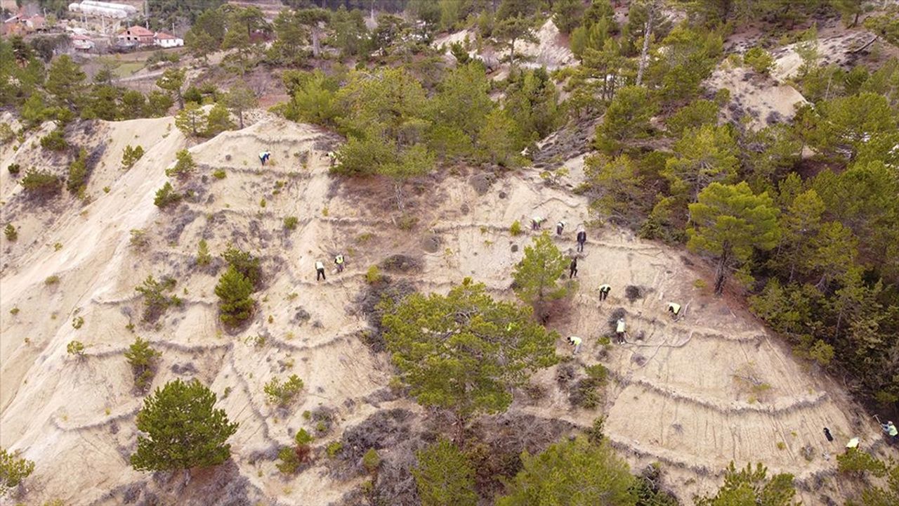 Ormansızlaşmış veya yangın sonrası bozulan alanlarda toprak taşınmasını engellemek amacı ile teraslama, fidan dikimi, biyoteknik ve mekanik önlemleri hayata geçiren ekipler, doğal yapının korunmasını sağlıyor.