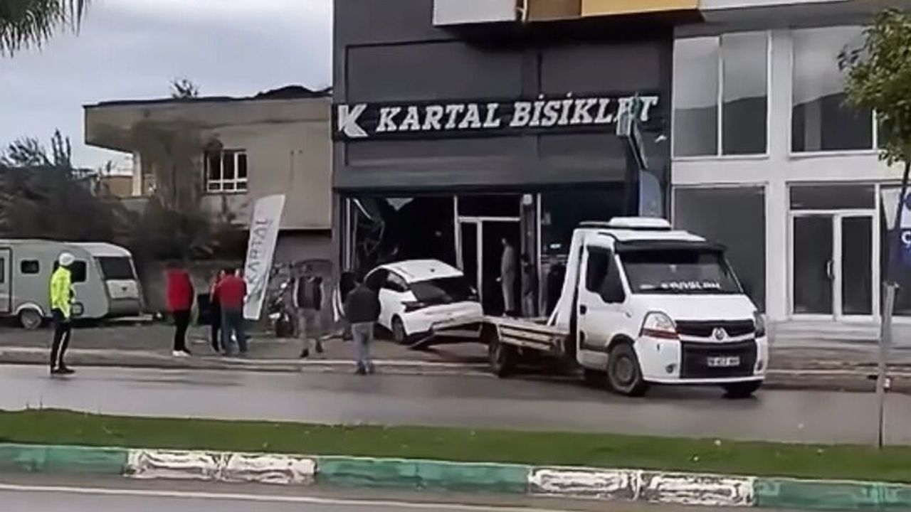 Sürücüsünün kontrolünü kaybettiği otomobil, kaldırımı aşıp, bir iş yerinin vitrinine çarptı. Çevredekilerin ihbarı üzerine kaza yerine sağlık ve polis ekipleri sevk edildi. Kazada araçta ve iş yerinde hasar oluştu. Araç, çekiciyle bölgeden kaldırıldı. Kaza, iş yerinin güvenlik kamerasına yansıdı.