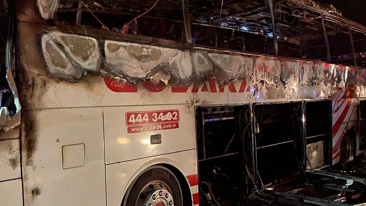 Otobüsün kullanılamaz hale geldiği yangının çıkış nedeninin belirlenmesi için inceleme başlatıldı.