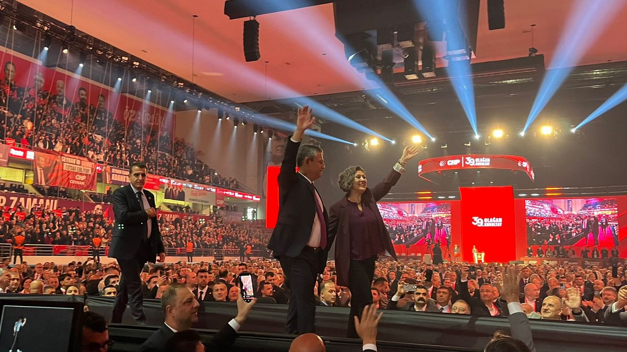 Ankara Arena Salonunda devam eden CHP Kurultayı’nın ikinci gününde CHP Genel Başkanı Özgür Özel Kurultay salonuna girişinde coşkuyla karşılandı. Özgür Özel yanında eşi Didem Özel ile birlikte partilileri selamladı.