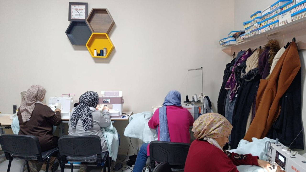 Kadınların meslek edinmesi ve üretime katılması amacıyla açılan dikiş kursunda eğitim gören kursiyerler, hazırladıkları ürünleri özenle paketleyerek ihtiyaç sahiplerine ulaştırılmak üzere hazır hale getiriyor. Kursiyerler, emeklerinin ihtiyaç sahibi ailelere ulaşacak olmasının mutluluğunu yaşarken, ortaya koydukları çalışmalar da takdir topluyor.
