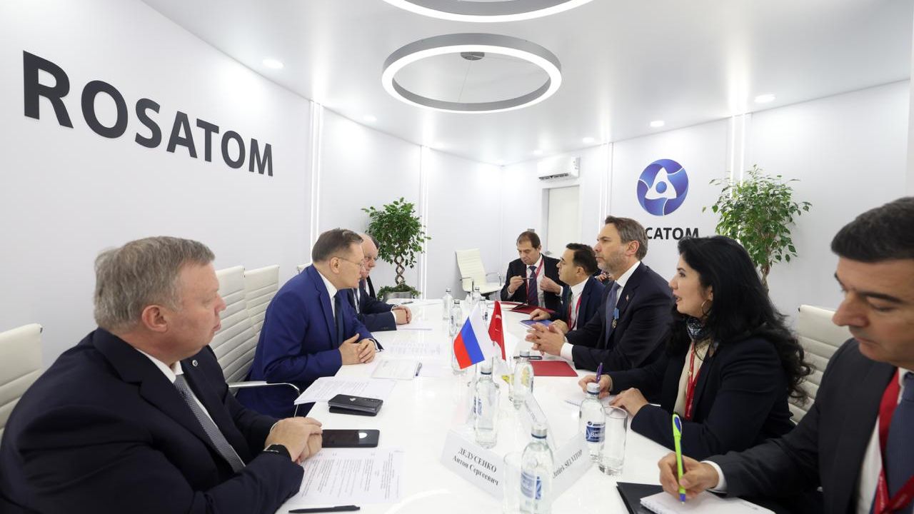Rusya Enerji Haftası dolayısıyla Moskova’da bulunan Enerji ve Tabii Kaynaklar Bakanı Alparslan Bayraktar’a Rusya Devlet Nükleer Enerji Kuruluşu Rosatom tarafından ‘nükleer alandaki uluslararası iş birliği nişanı’ takdim edildi.