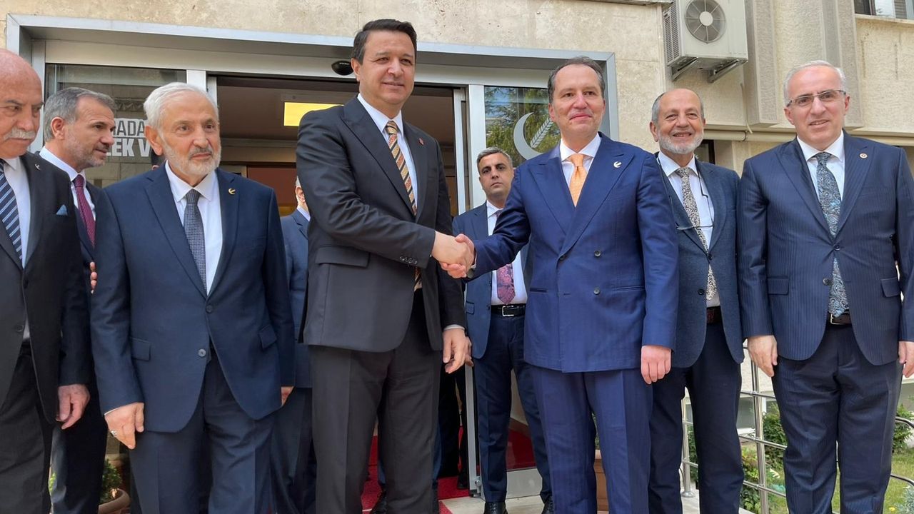 Saadet Partisi Genel Başkanı Mahmut Arıkan, beraberindeki heyet ile birlikte Yeniden Refah Partisi Genel Başkanı Fatih Erbakan'ı parti genel merkezinde ziyaret etti.